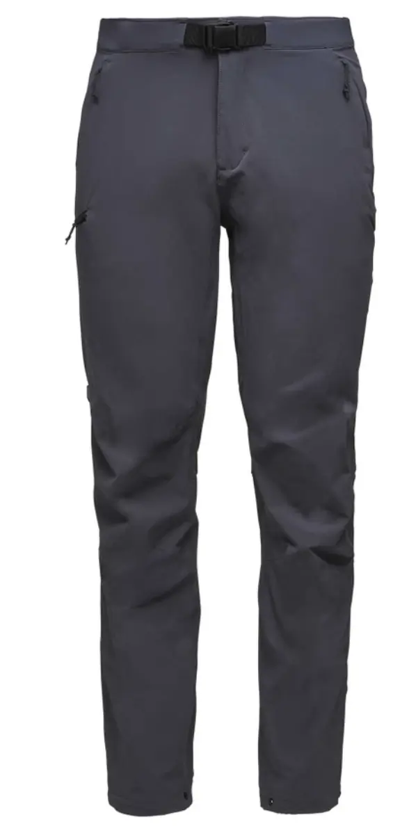 | Black Diamond Alpine Pants | $150 | 14.1 oz. | Four-way stretch-woven with PFC-Free DWR finish | 2 zippered hand pockets, 1 zippered side pocket | Slim |