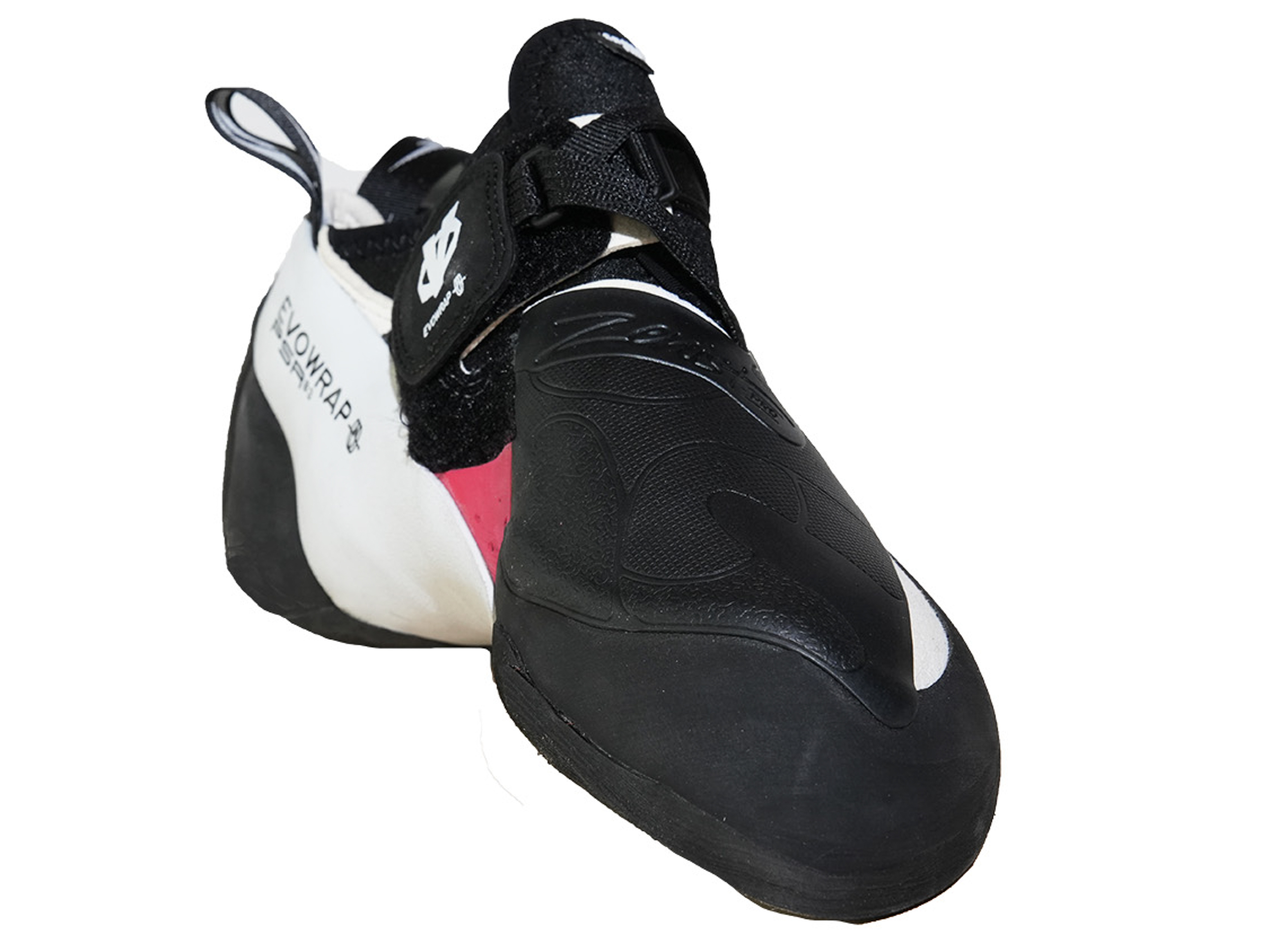 First off, it provides longitudinal tension to tighten the front of the shoe against the toes for a precise and powerful fit. This is done without depending solely on the slingshot rand as in other shoes. The EvoWrap dramatically improved comfort compared to shoes that don’t have any other way of generating longitudinal tension.