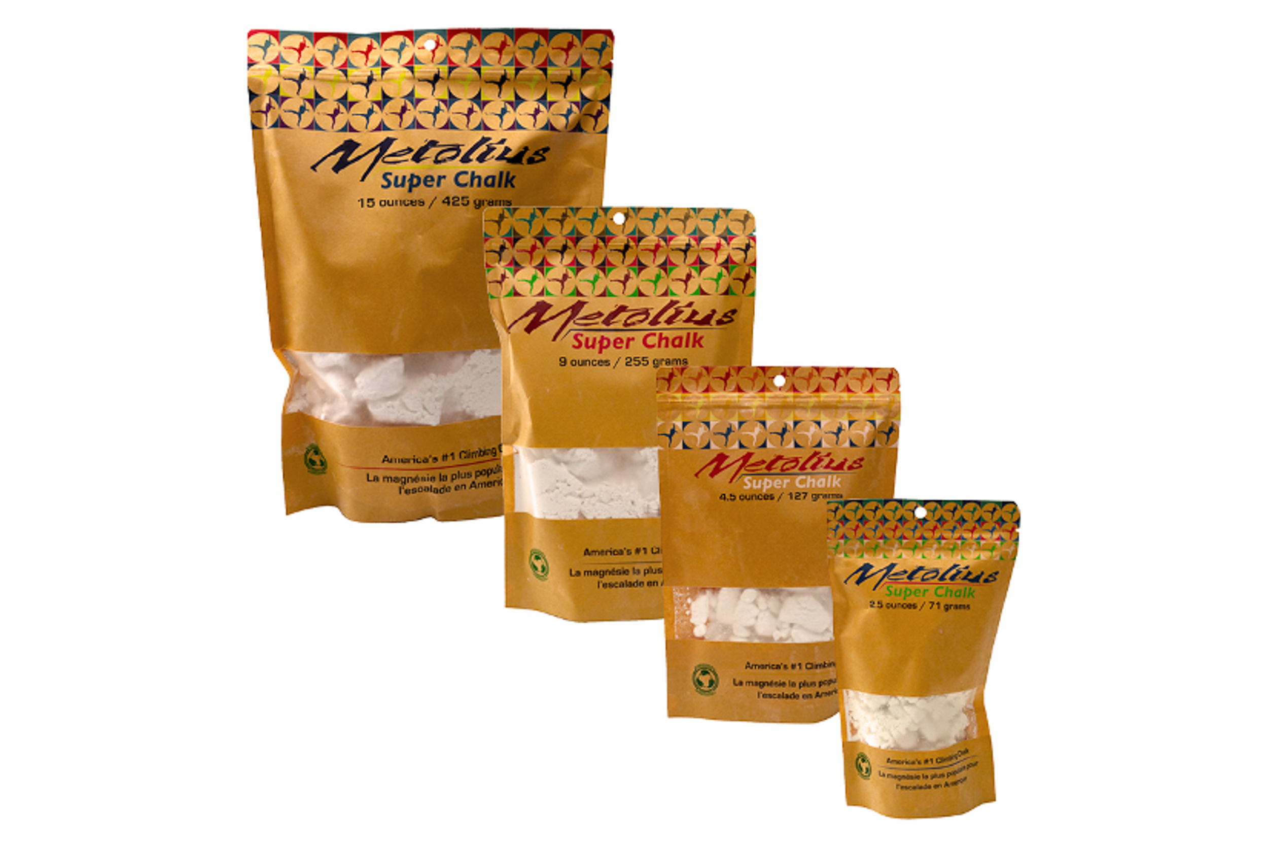 Metolius simply uses 100% magnesium carbonate and crushes it to the perfect consistency. It’s a blend of powder and chunks that deliver confidence that you are getting the appropriate amount on your paws. And, I like the resealable bag and the low price ($5 for 4.5 ounces).