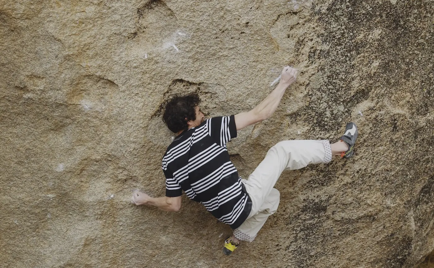 On some of the hardest climbs, Takahashi frequently uses different shoes on either foot to give himself an extra margin for specific cruxes. Recently, he climbed a new V15 first ascent in Bishop, Calif., with a Mandala on his right foot and a Solution on his left.