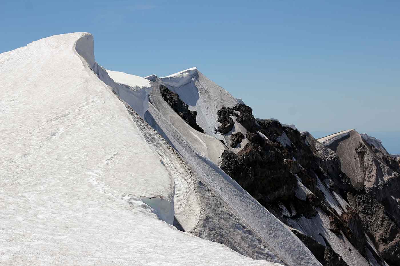 St. Helens’ summit is a backwards place. A massive eruption will do that. Indeed, on the south face there is no normal top, simply an end to the slope then a drop more than 1,000 feet off the other side.
