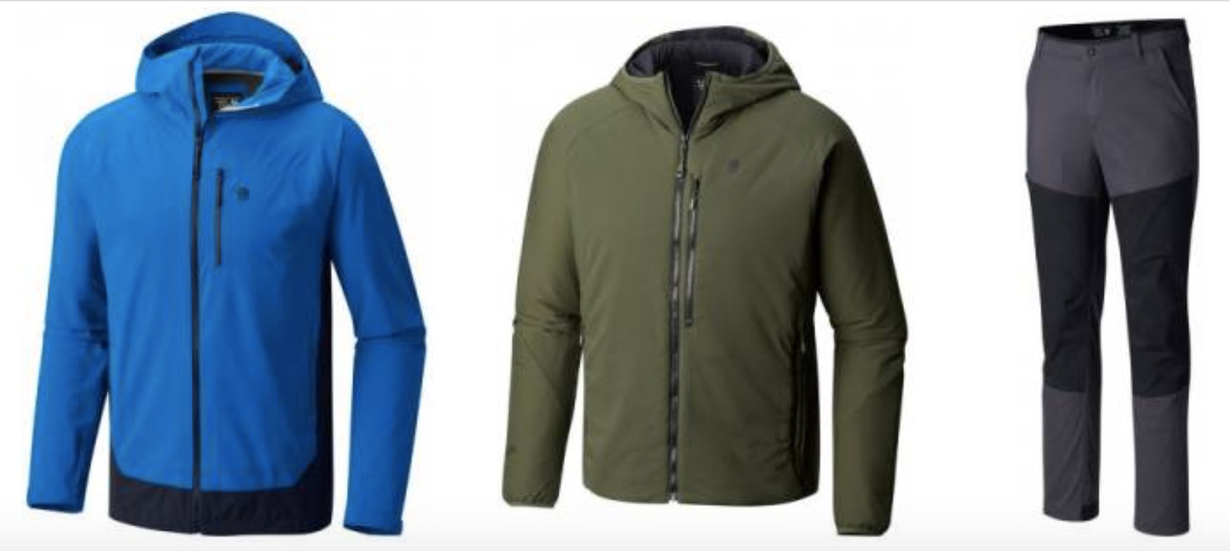 Mountain Hardwear Ozonic Shell ($200), Kor Strata Hoody ($220),