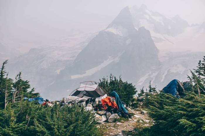 We woke at first light, our bags damp from morning dew. After a long day of scrambling the Ptarmigan Traverse in heavy mist, the clouds split just before sunset. We opted to leave the rainfly off the tent with hopes of seeing stars. Despite the wet morning, it was worth it. The heavens seem so much closer when you’re sleeping in the alpine.
