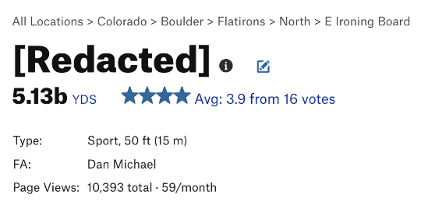 So what’s to be done with routes like Slave to the Rhythm that remain caught in “[Redacted]” limbo on Mountain Project, and as a result, possibly in future guidebooks?
