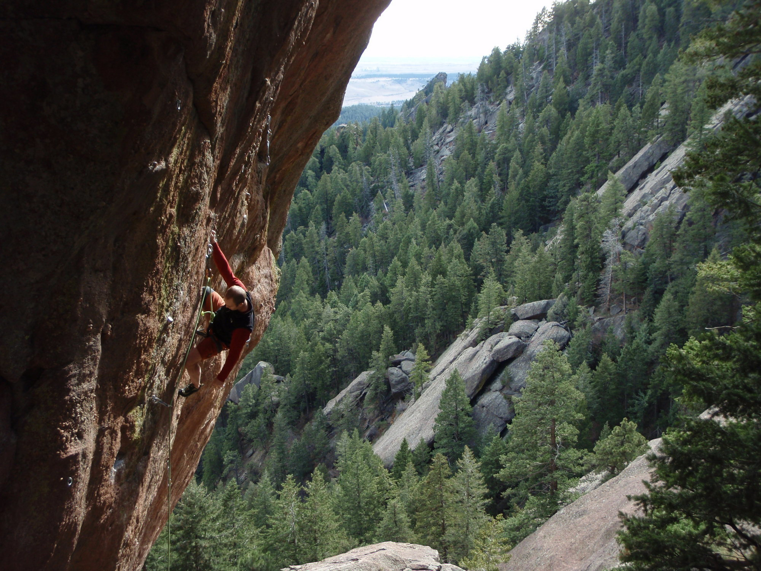 The Flatirons, the venerable sandstone area in the Boulder Mountains, have long been a cornerstone in American rock climbing. People scrambled and established moderate multipitch routes here as early as the 1930s. Starting in 1985, some of America’s earliest sport climbs began to appear on their steeper flanks. They mainly climbed smooth, slabby faces on crimps and pebbles, with a few forays into overhanging terrain on pockets, cobbles, and huecos.
