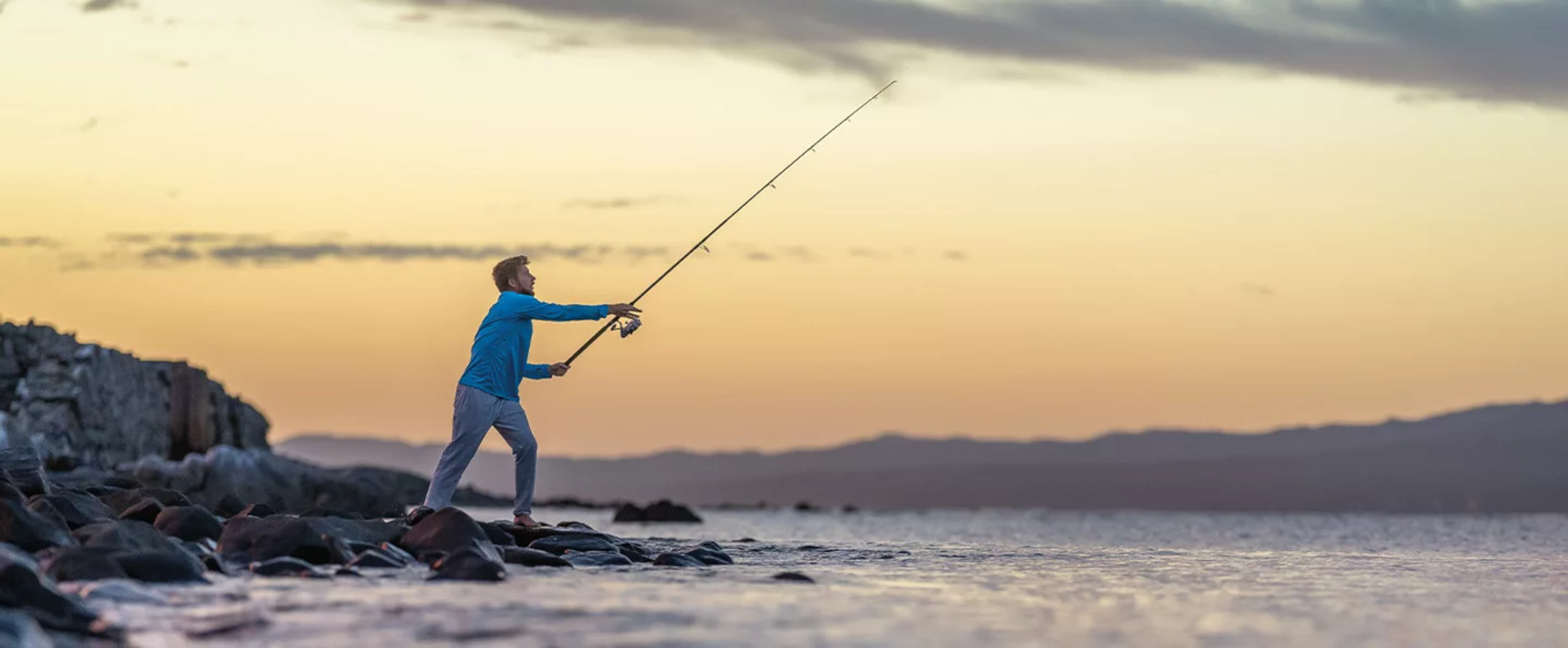 This super-breathable angling shirt is made from fast-drying Columbia’s Omni-Wick fabric and includes Omni-Shade tech that offers UPF 40 sun protection. Fishing-friendly features include notched sleeves, a rod holder loop, meshy back vents, and zippered pockets.