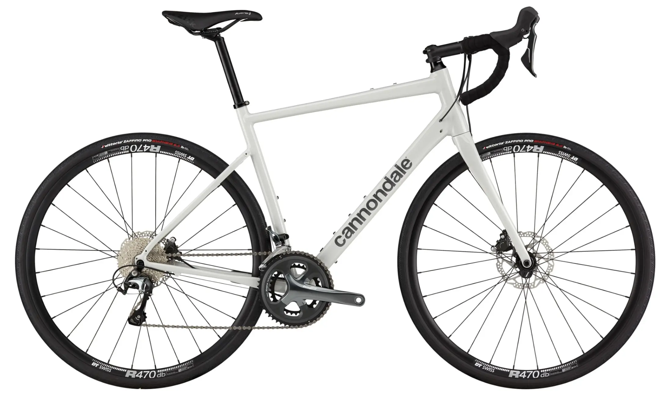 The Synapse AL 2 road bike comes with a Shimano Tiagra 10-speed drivetrain and rides on DT Swiss rims with Vittoria Zaffrio Pro 700c x 30 mm tires. It comes with alloy handlebars and a Fizik saddle. Click through for more specs.