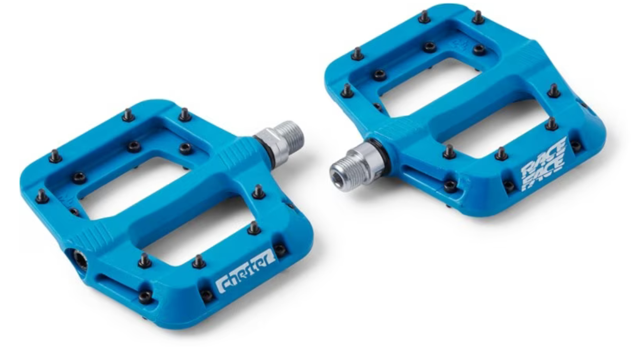 Race Face Chester pedals sport new traction treads on a concave platform with eight replaceable hex traction pins on each side. The corse is a sealed steel axle and has cartridge bearings and DU bushings.