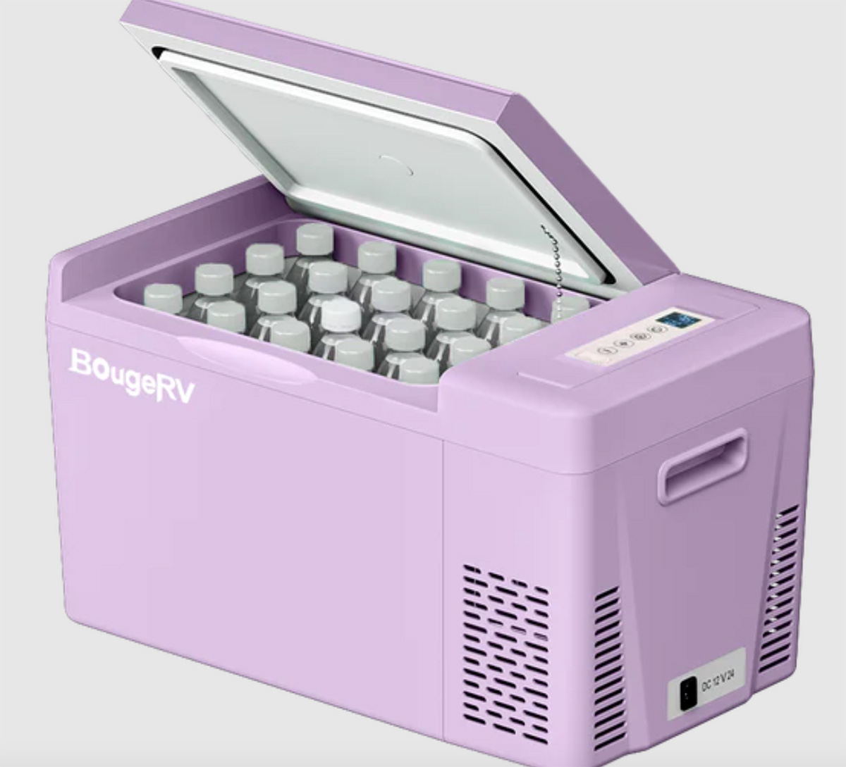 Check out the BougeRV 12V 23 Quart Colorful Purple Portable Fridge for a great deal ($44 off) on a good-looking fridge.