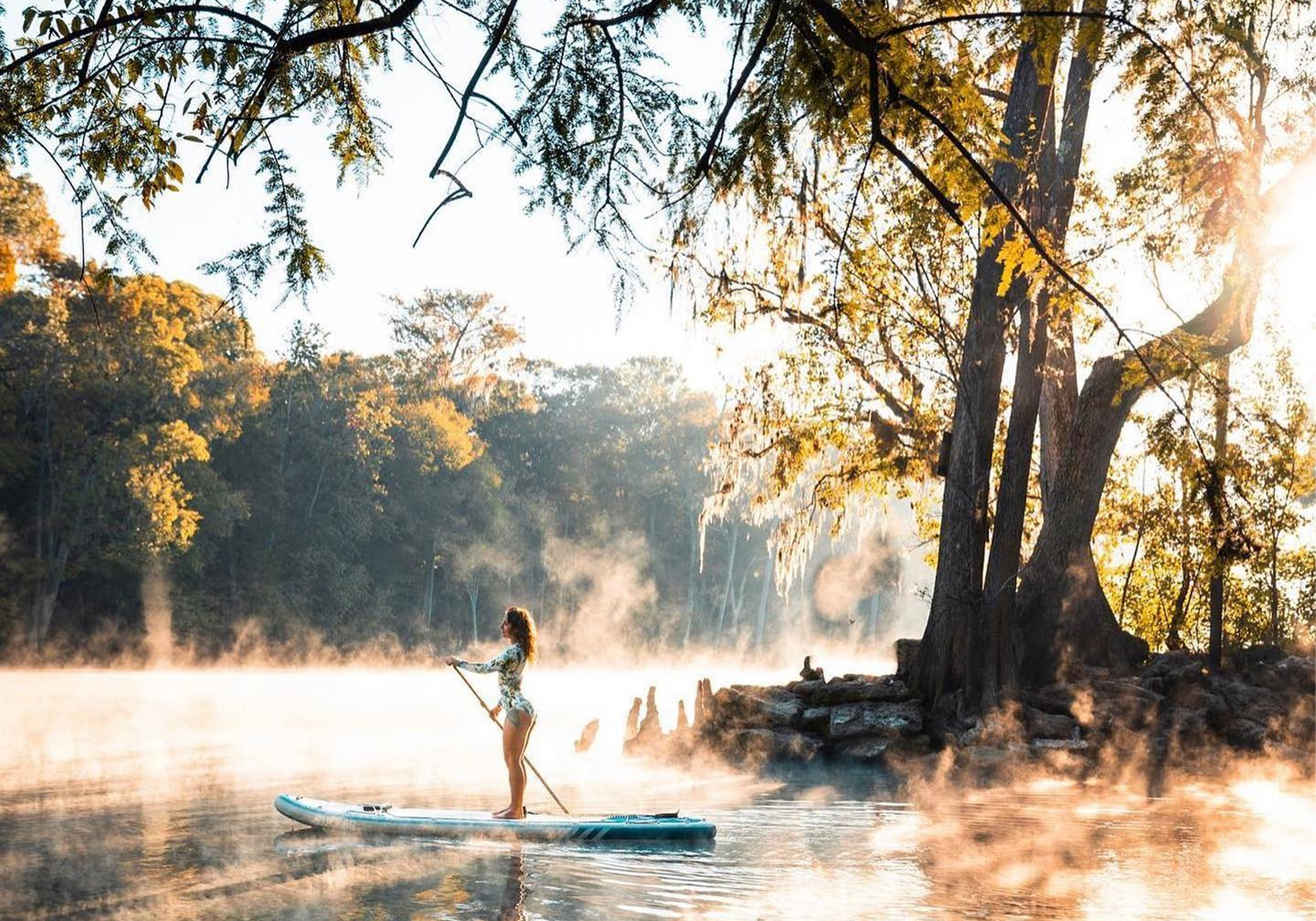 If you’re looking for an inflatable paddleboard that’s great for beginners and for versatile use, this is an option. It’s best suited for any type of calm waters. The 240-pound weight capacity leaves room for two smaller riders or one larger adult, plus gear for a day on the water. Included with the SUP are a hand pump, backpack, leash, fins, and patch kit.