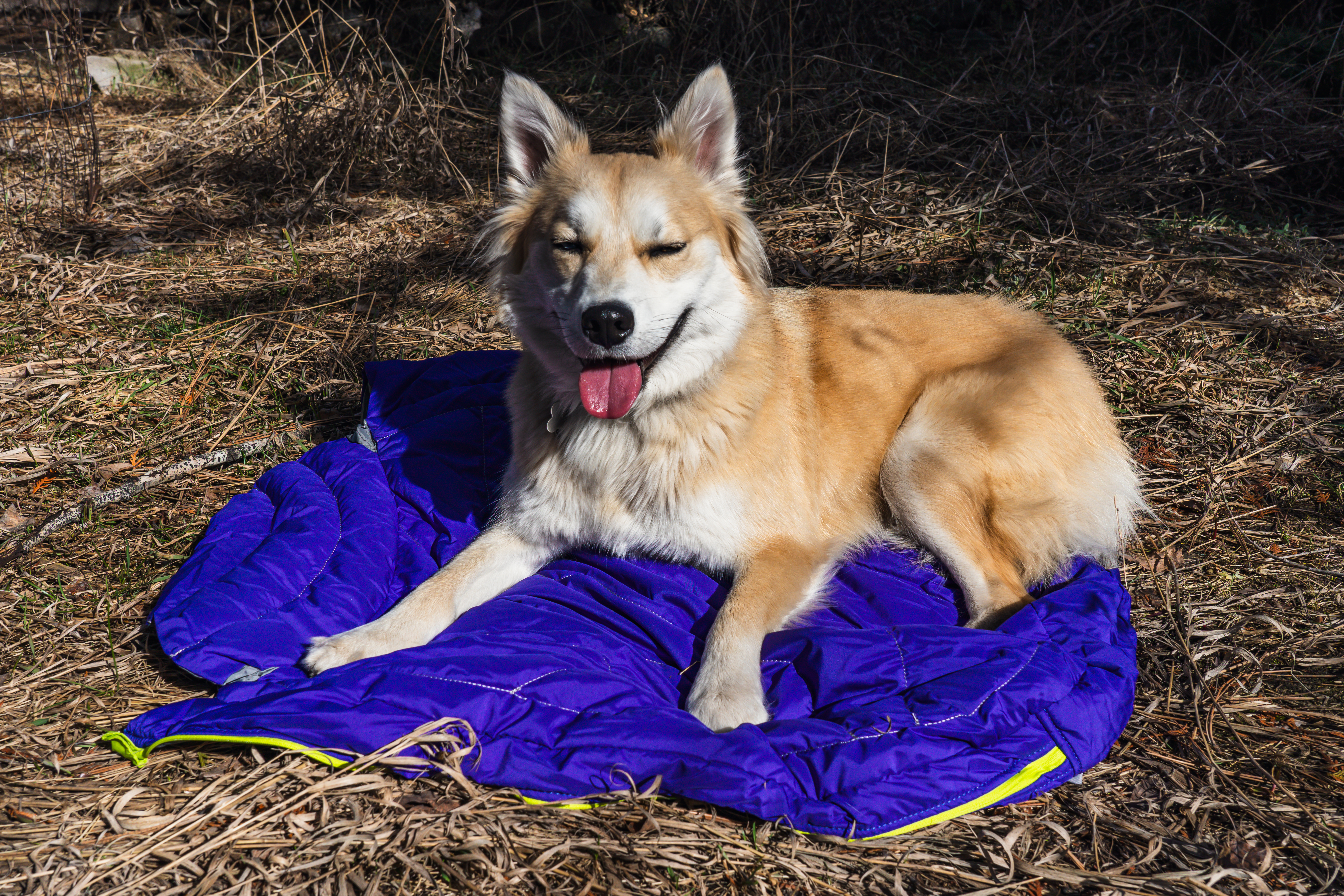 | Ruffwear Highlands Dog Sleeping Bag | $100-140 | 75 denier cire polyester with DWR (Durable Water Repellent) finish, 120 g recycled polyester synthetic down, 40 denier nylon with WR (Water Repellent) finish, YKK reverse coil zipper | M, L | No |