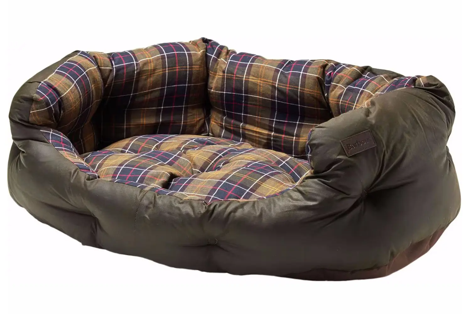 | Barbour Wax/Cotton Dog Bed | $100-180 | 100% waxed cotton, 70% polyester, 30% acrylic sherpa fleece | S (24”), M (30”), L (35”) | No |