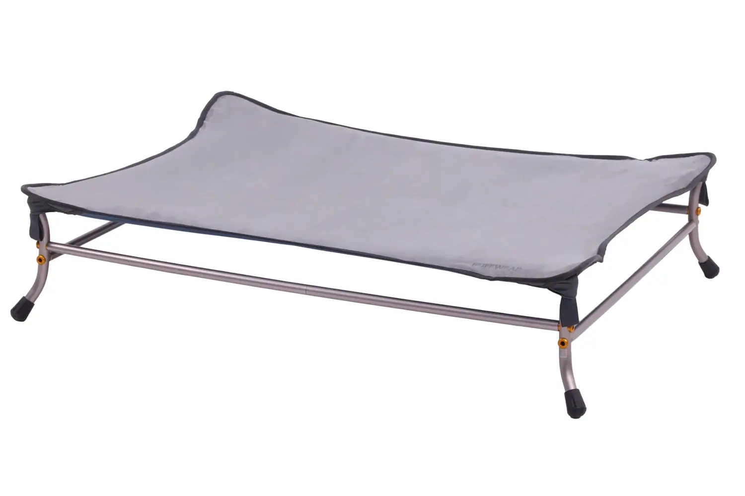 | Ruffwear Mt. EverRest Dog Cot | $180 | 150 denier polyester suede with WR (Water Repellent) finish, 200 denier polyester with WR finish, anodized aluminum, shock cord, non-PVC soft urethane | One size | Yes |