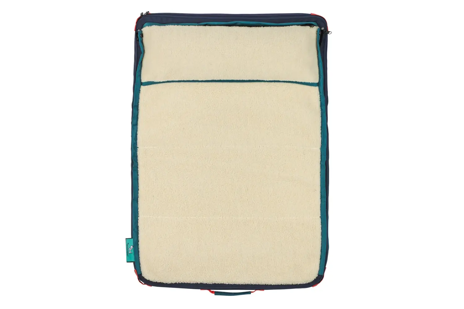 | Ruffwear Highlands Dog Pad | $40-60 | 150 denier cire polyester suede with WR (Water Repellent) finish, 4 mm small cell foam, 120 g recycled polyester synthetic down, 600 denier polyester with TPE finish | M, L | No |