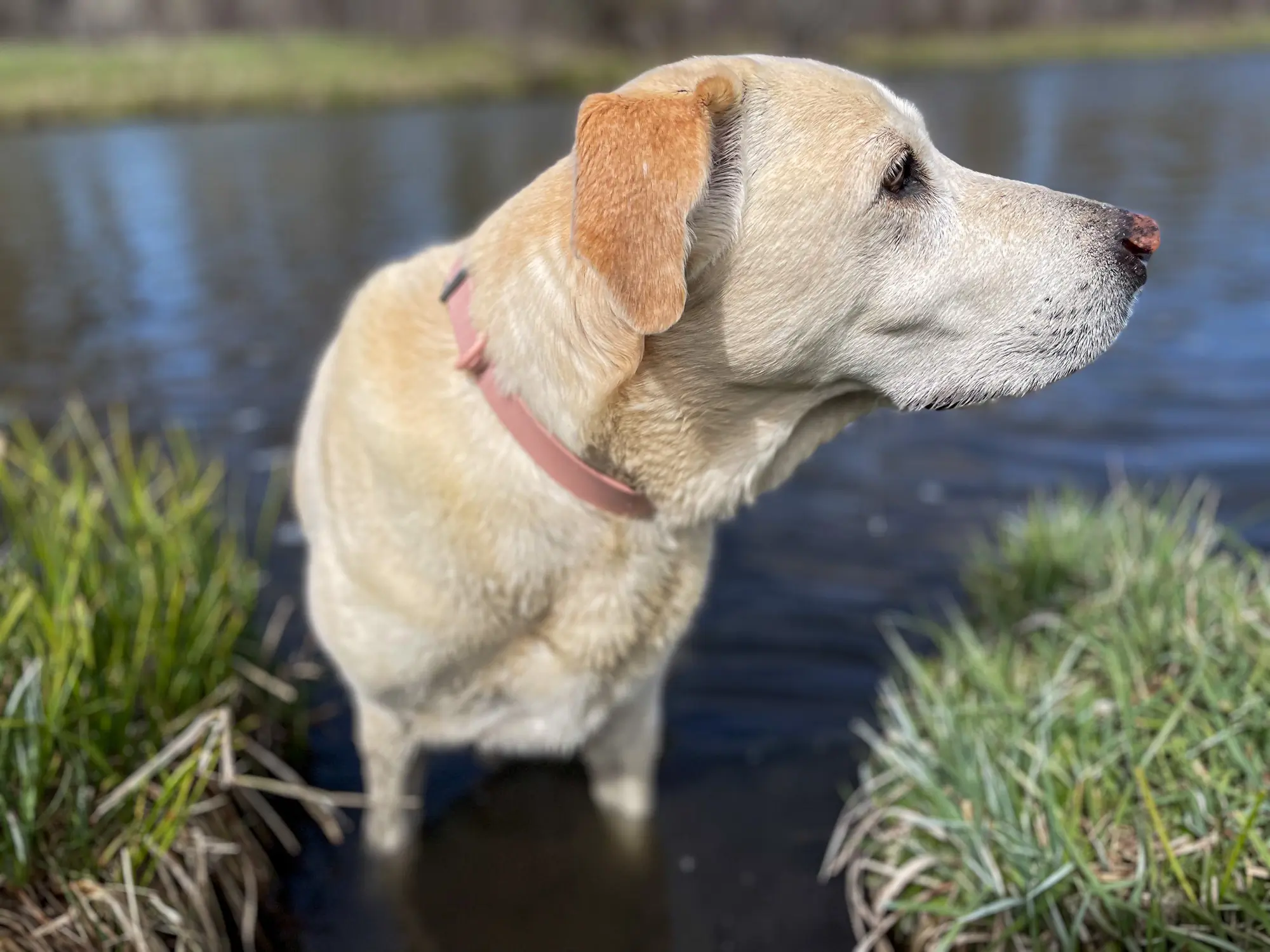 A collar’s material matters. Nylon collars hold water and dirt and can become stinky if not washed often. Dogs that spend a lot of time in the water, whether swimming for the sheer joy of it or retrieving ducks in hunting season, will need a waterproof collar like the Fable Signature Collar and the Wild One Waterproof Dog Collar.