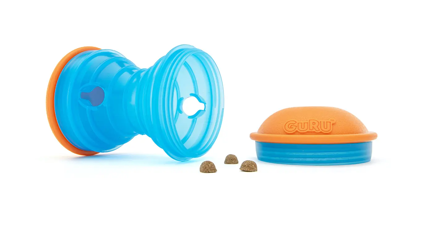 The GURU Ball is a treat-dispensing, puzzle-solving marvel that keeps dogs engaged for hours. Fill it with kibble, and watch as your dog rolls, spins, and bounces the ball to release treats. Perfect for interactive fetch games, this ultra-durable ball ensures independent play with easy loading and cleaning.