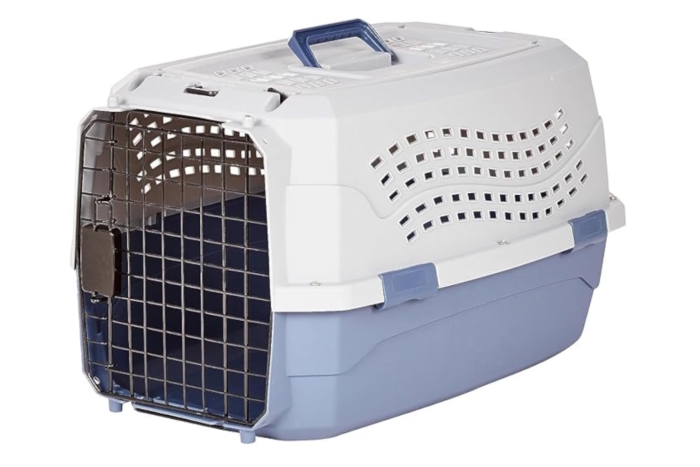 | Amazon Basics 2-Door Top-Load Hard Sided Dog Pet Travel Carrier | $26 | 4.51 lbs. | Body: Plastic, Door: Steel wire | Spring-loaded steel latch | 2 |