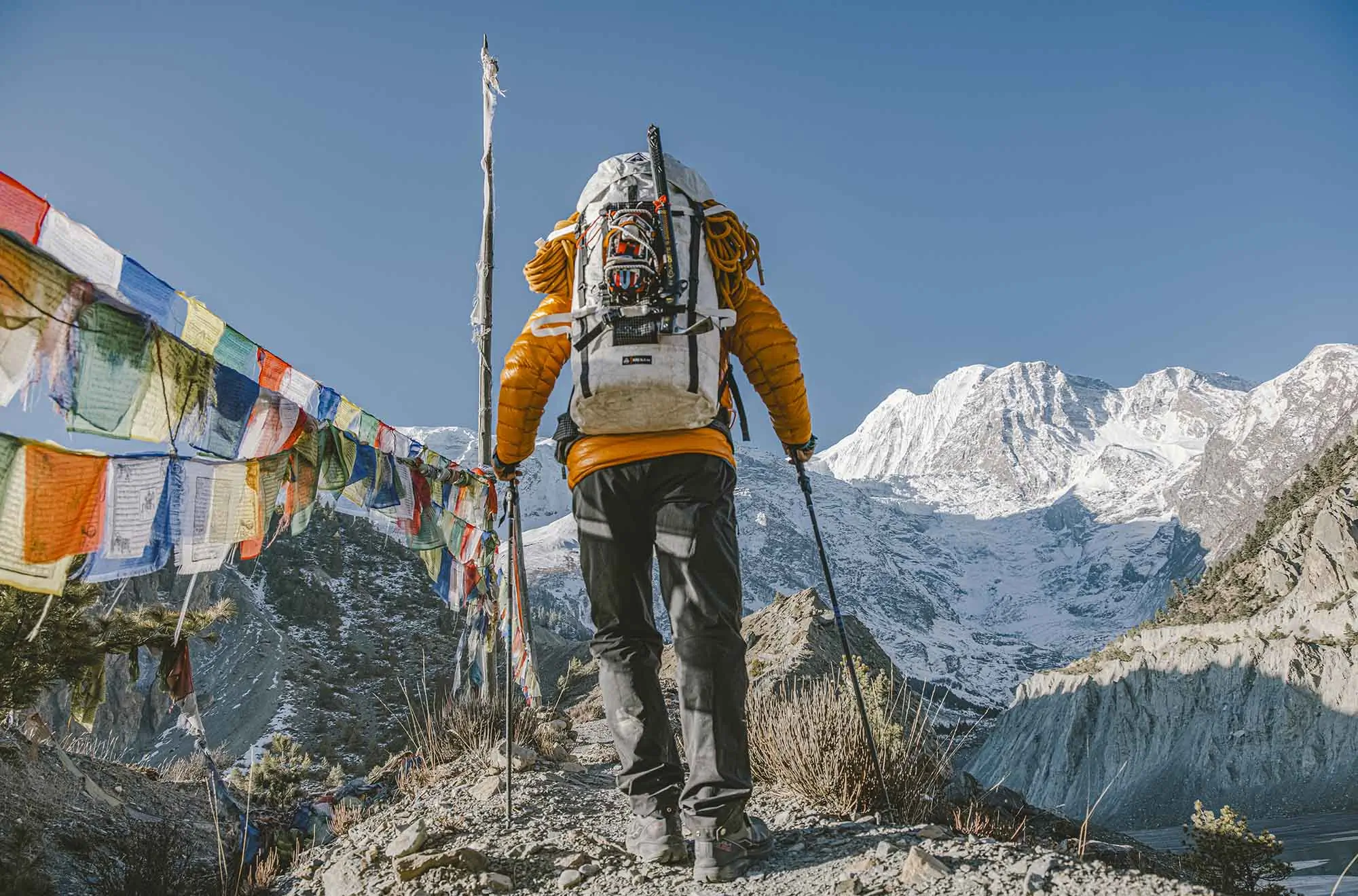 It comes in two sizes: the $425 Halka 55L, meant for clients, and the $500 Halka 70L, aimed toward professional mountaineers and guides, like Sherpa Ang Tshering.