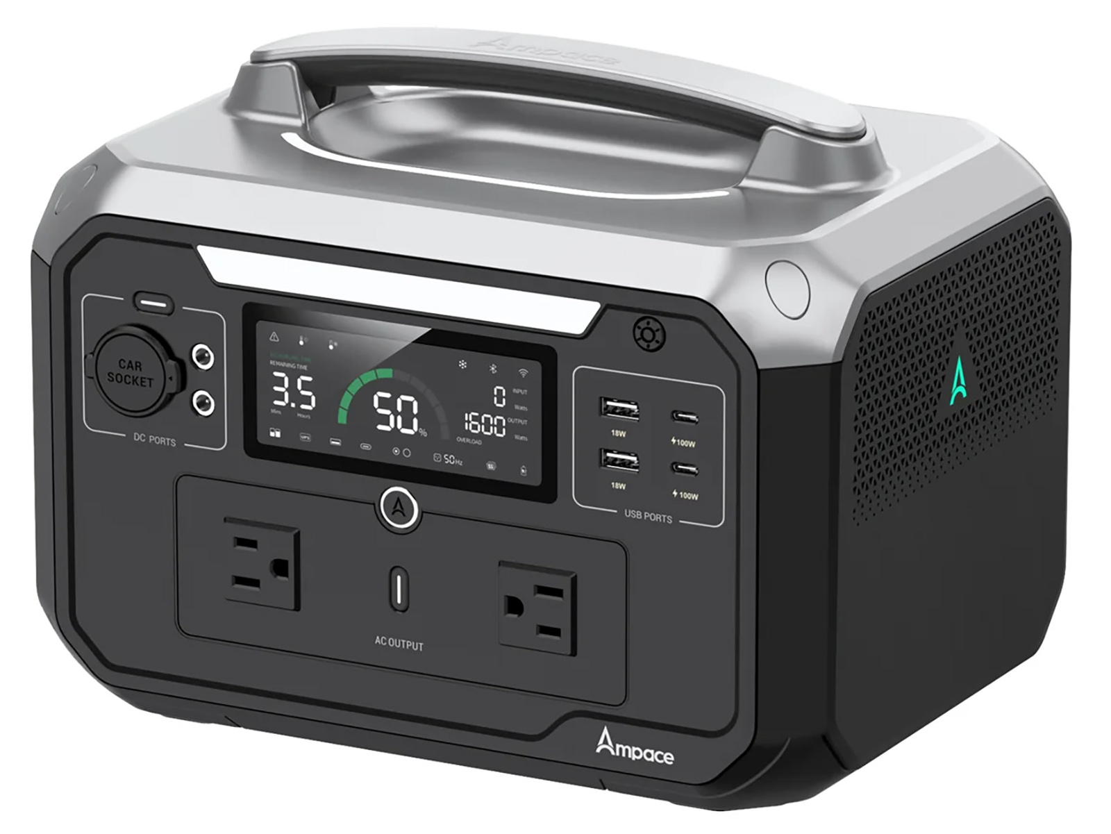 The Ampace Andes 1500 ($1,000) can be fully charged in 55 minutes, which is supposedly 50% faster than competing models, according to Ampace. It has 13 outlet options, works with 99% of household appliances, and operates at temperatures from -4 degrees F to 113 degrees F.
