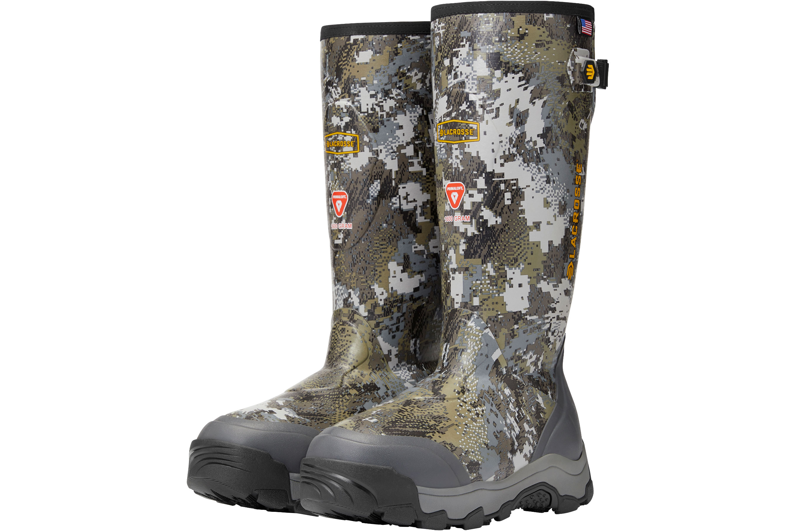Stay warm, dry, and scent-free with your feet tucked snugly in a 3.5mm neoprene boot, wrapped in hand-laid rubber. LaCrosse’s Alpha Evolution hunting boots — women’s and men’s — are made in the USA (with imported materials) and employ a host of performance technologies. These include Vibram Traction Lugs with IceTrek compound on the soles, aerogel in the toe cap, Primaloft Gold insulation throughout, and Sitka’s OPTIFADE Elevated II camo design.