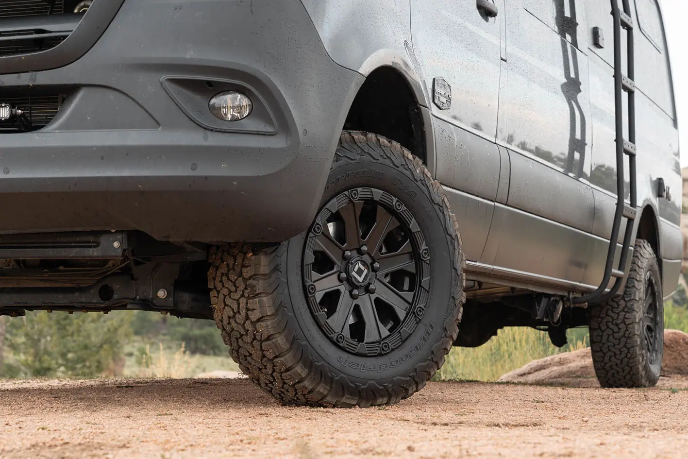 Equipped with BF Goodrich’s legendary KO2 treads, each wheel’s 3,200-pound load capacity exceeds the Sprinter’s chassis requirements, accommodating even the most robust builds. The Apex is available in 38mm and 29mm offsets — for stock or modified suspensions — and sells as a set of four ($2,848) or five ($3,560).