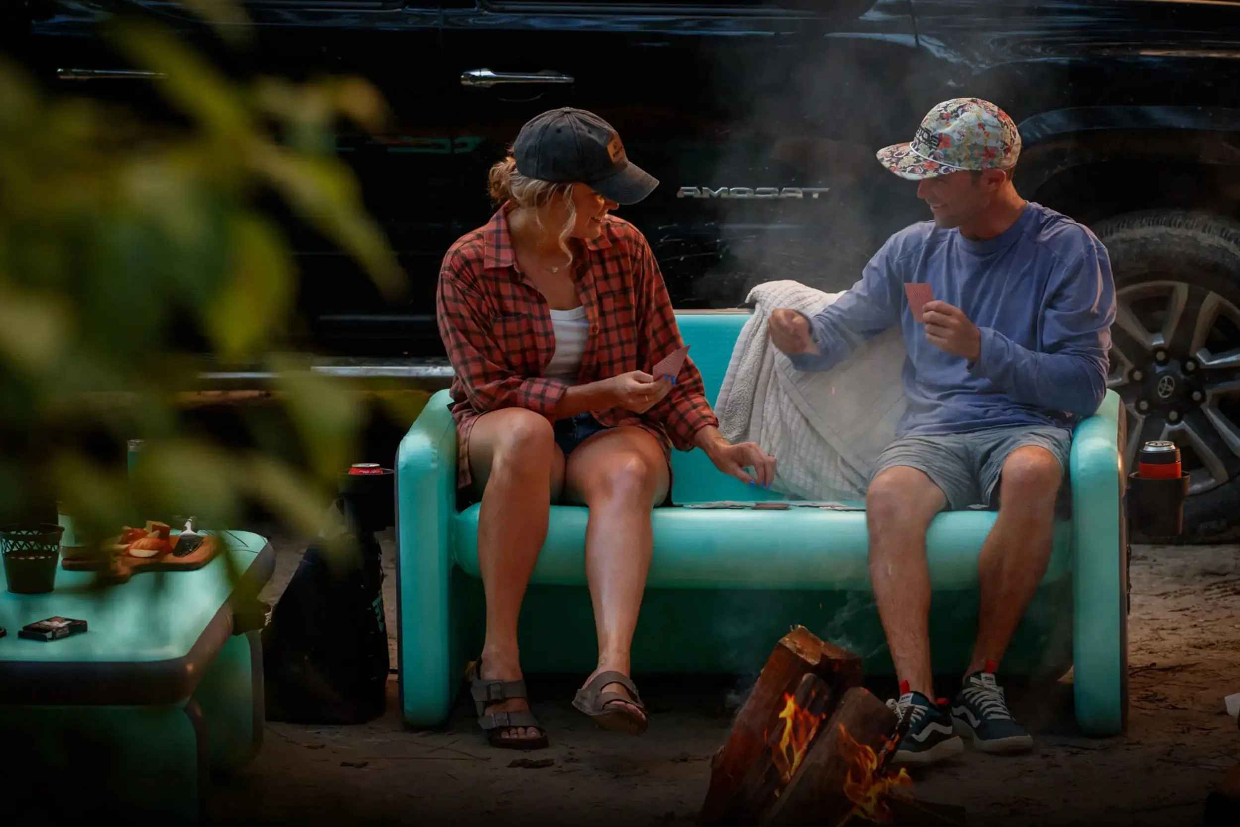 The couch runs $399, comes in two patterns (I like the tropical print), and sits low to the ground for maximum comfort. BOTE sells a range of accessories that interface with its furniture, including a cupholder.