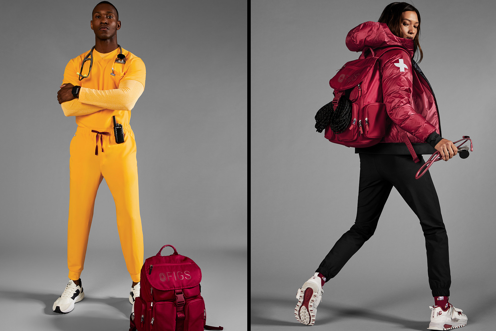The collection showcases ultra-durable ripstop fabric designed to withstand up to 40,000 abrasion cycles in lightweight items and 70,000 abrasion cycles in heavier-weight pieces. Available in red, yellow, or black, the collection includes men’s and women’s puffer jackets, scrubs, bags, and New Balance sneakers. The line aims for healthcare workers in challenging roles at hospitals or in the field.