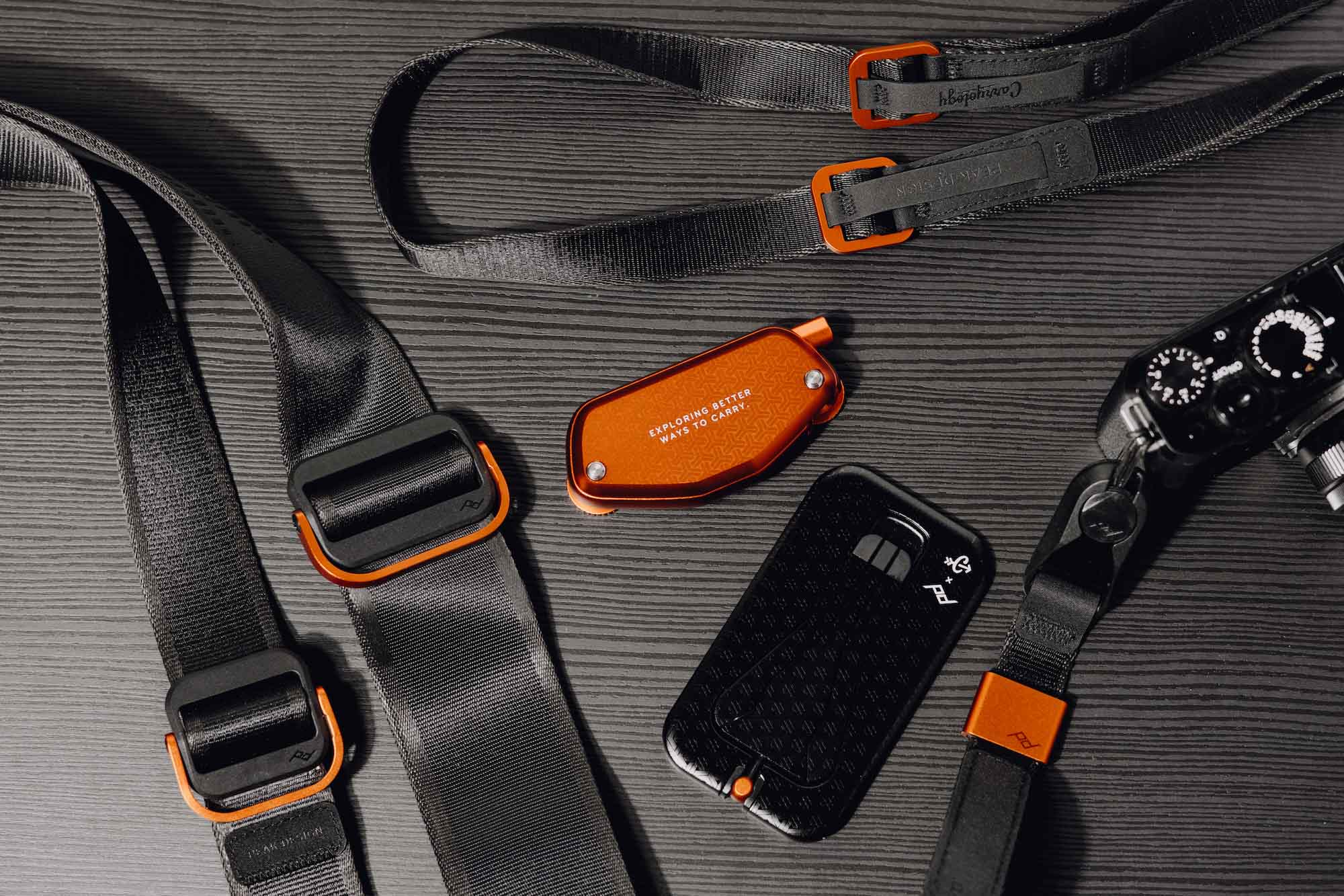 Peak Design has launched a limited-edition capsule in collaboration with Carryology, highlighting Peak Design’s essential photography tools with refined materials and aesthetics. The collection includes the Slide, Slide Lite, Leash, Cuff, Capture Clip, and Mobile Tripod, all with a distinctive black-and-orange color scheme and accents of Carryology’s Auxikko pattern, a design inspired by Japanese armor.