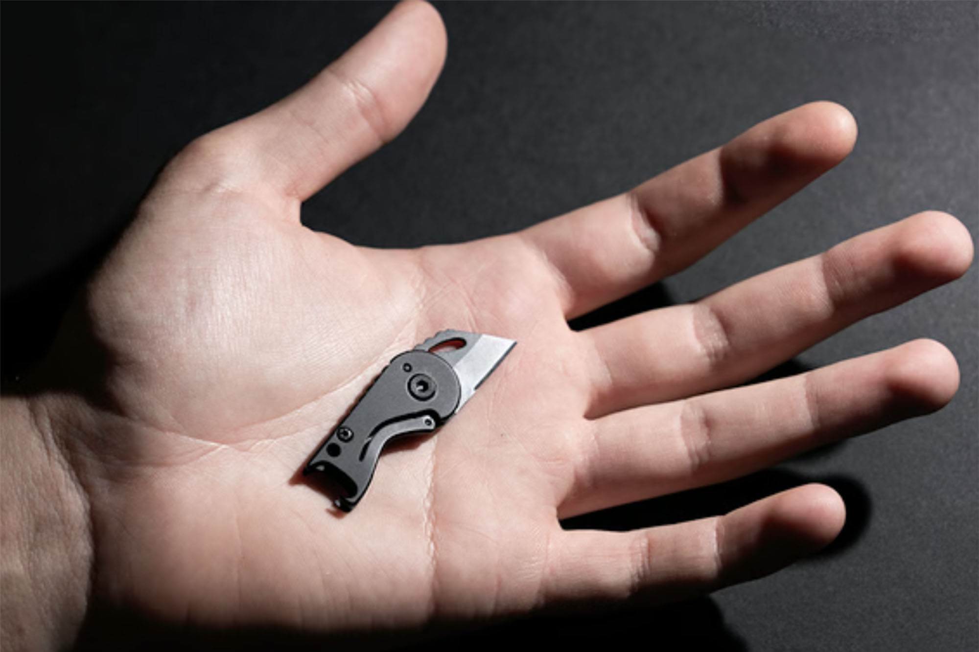 Its safety features include a frame lock that clicks securely into place, ensuring the blade stays open when in use. The ridged spine on the back allows for maximum grip, preventing slips. Also, the keychain hole doubles as a slotted hex driver, compatible with mini hex bits for added functionality. The Kickstarter discount ends in late November.