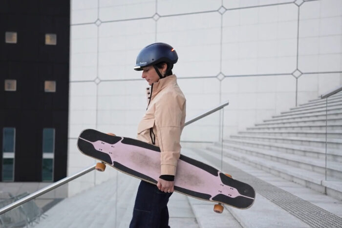 Overade’s LIFE helmet includes turn signals in addition to front and rear lights, a brake light, a magnetic strap buckle, and a removable visor. It’s all designed with what Overade calls “a French touch.”