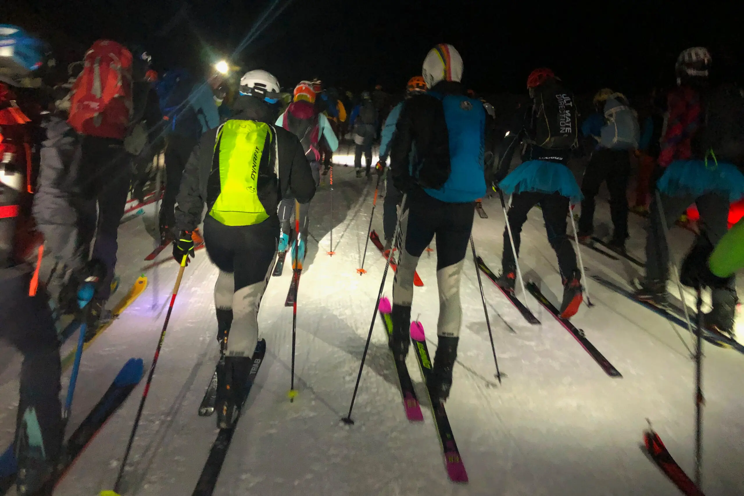 It’s less of a starting line than a mob of anxious skiers standing in the cold ready to start moving. All 400 racers, roughly 200 teams of two, gather at the base of Crested Butte resort pointed uphill. Headlamps click on. Frozen breath and nervous heckles abound.