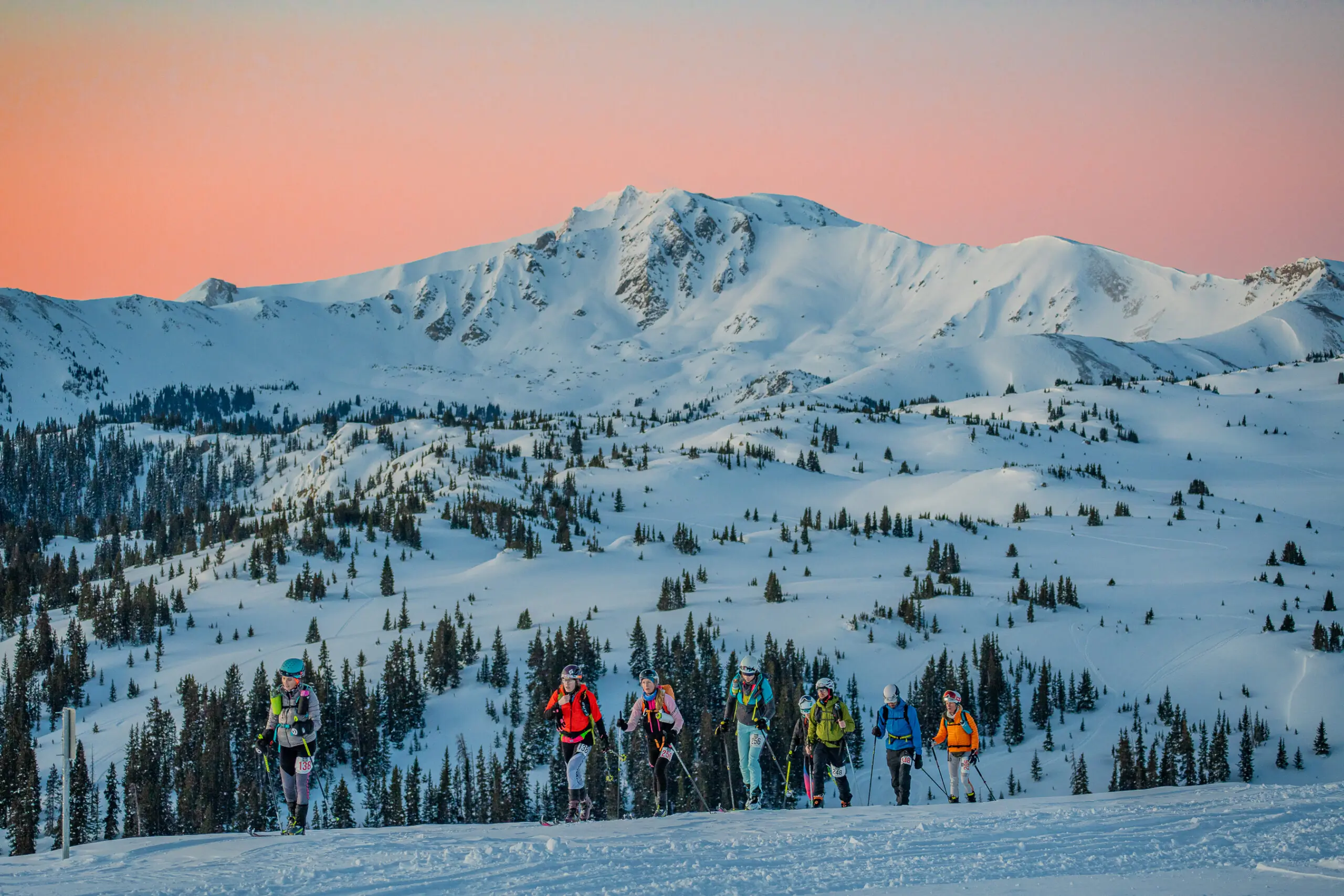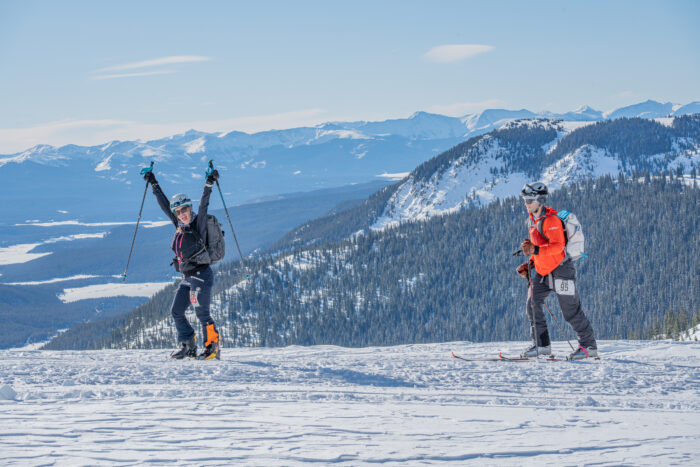 The gun fires and the starting line sprint commences as teams vie for skin track position. It’s 1.3 miles uphill to the first transition. Rip skins and start skating toward a few icy descents and notorious rollers to clear the resort boundary. By mile 4, you’ve made it to the backcountry, and it’s time to stick the skins back on for the next 13 miles.