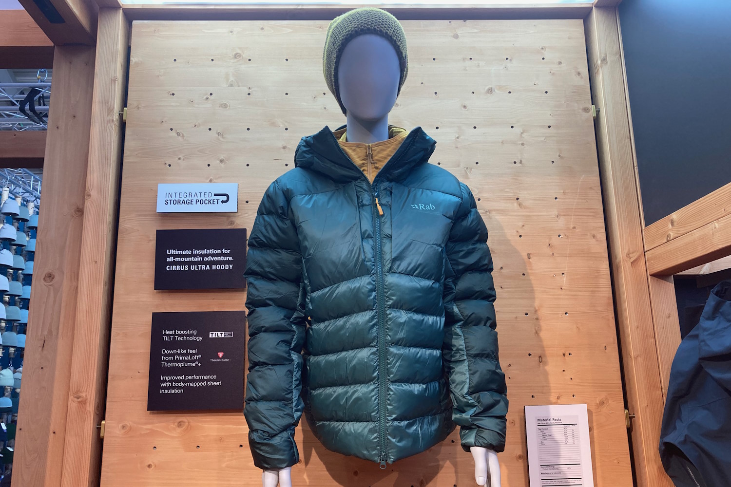 With one of the larger booths at the show, Rab continues to advance the mission of insulation. While the brand has been big on down insulation, the offering of a new synthetic insulation product from Primaloft called Thermaplume Plus inspired the Cirrus Ultra Hoody.