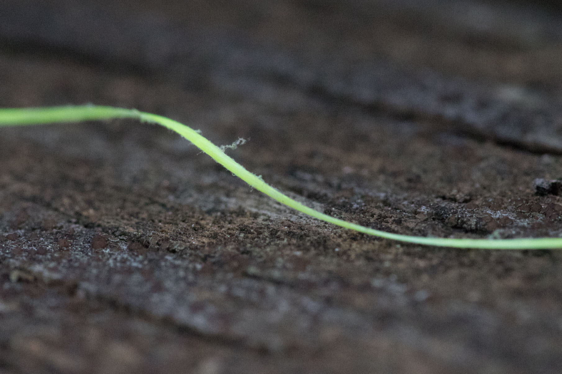 Enter another one of my redneck, literal backyard tests. I took my 10-pound Seaguar Smackdown and 10-pound Berkley Forward to the backyard woodpile. I marked a small section on each line and ran it over a log 100 times. The following are macro images of each one of the lines after the test: