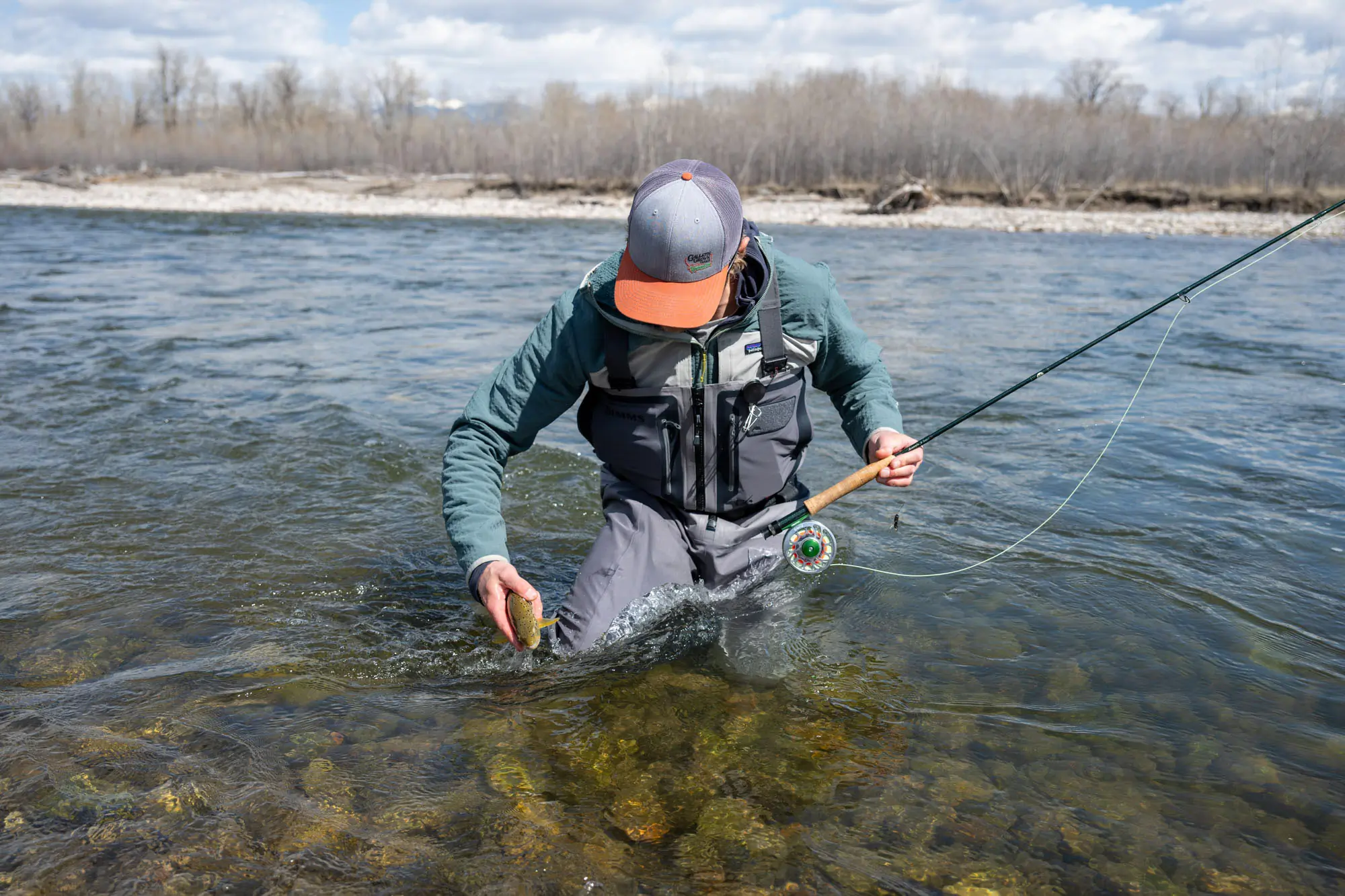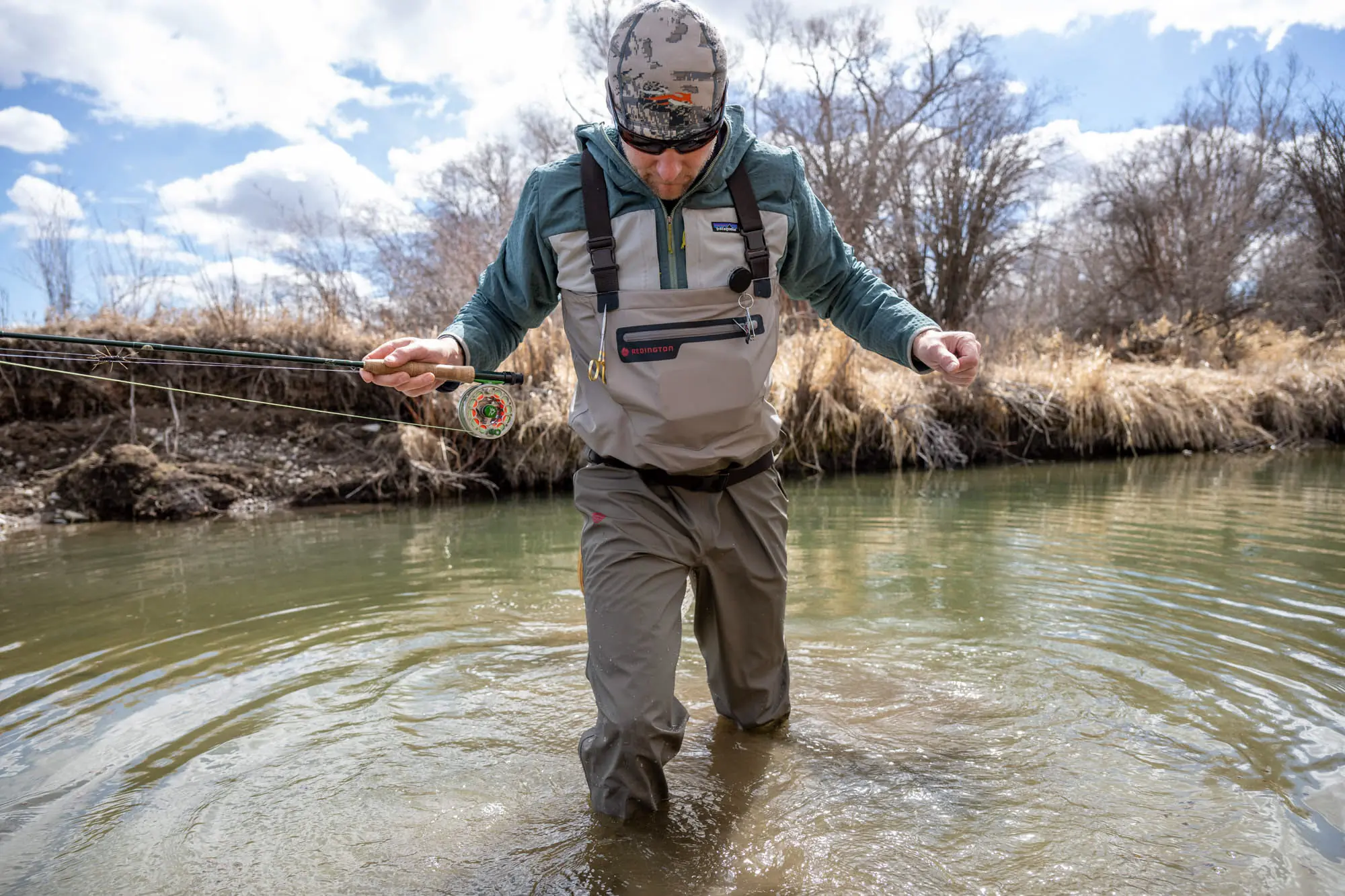 In colder weather, opt for waders that allow enough room for additional layers, like a warmer jacket. Although not worn beneath waders, wearing a brimmed hat and polarized sunglasses is always recommended for sun and glare protection while on the water.