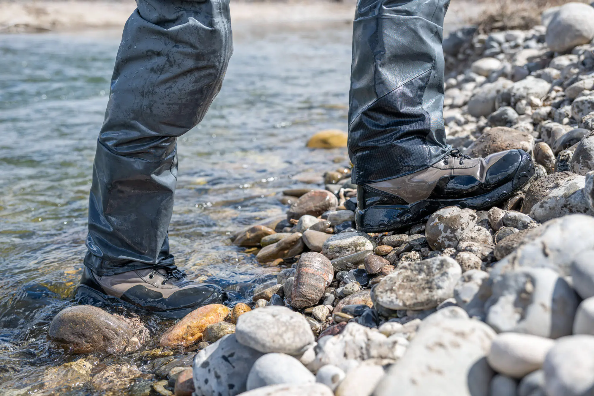 Gravel guards prevent gravel and debris from entering your boots, keeping them comfortable and prolonging their lifespan. Often made out of the same material as the lower, they have elastic, Velcro, or a clip that holds them tight around your ankle. The Simms G4Z and Boundary Zip Stockingfoot Wader use a lower-profile neoprene gravel guard to minimize snagging and rubbing while walking.