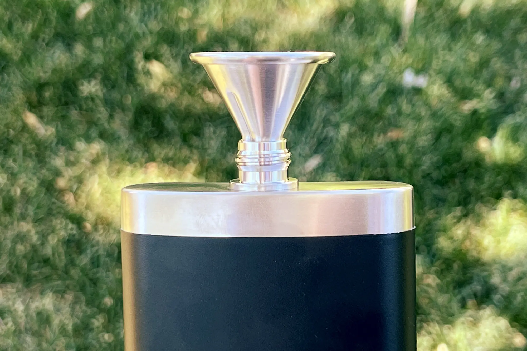 The flask comes with a stainless steel funnel that nests nicely into the neck of the flask. It’ll do the job.
