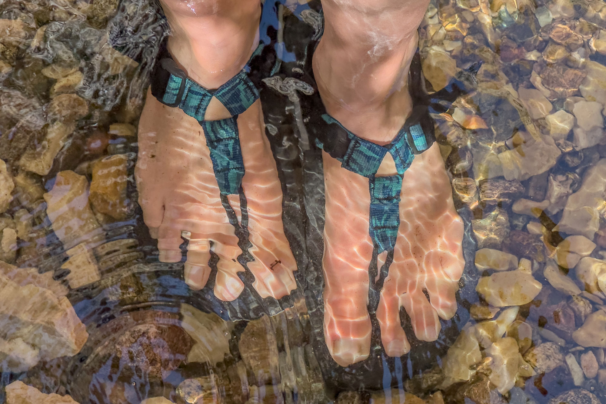 When walking along rocky creeks with a kayak or meandering upstream to pick creekside thimbleberries, I didn’t slip once. Not only did the soles feel secure on wet, uneven surfaces, but when walking with my feet underwater, the Bedrocks didn’t ever feel like they were in danger of getting pulled off, nor did they create excessive drag.