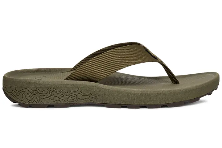 Ethylene-vinyl acetate is a thermoplastic, closed-cell foam with rubber-like qualities. It is meant as a substitute for materials such as natural rubber, neoprene, and PVC foams made from harsh chemicals. Because of its sustainability factor, EVA is used quite a bit in today’s flip-flops. The HOKA ORA Recovery Flip has a soft top layer of EVA that contributes to its comfort level, while the Teva Olowahu also uses EVA in its outsole to accommodate those looking for a lighter option.