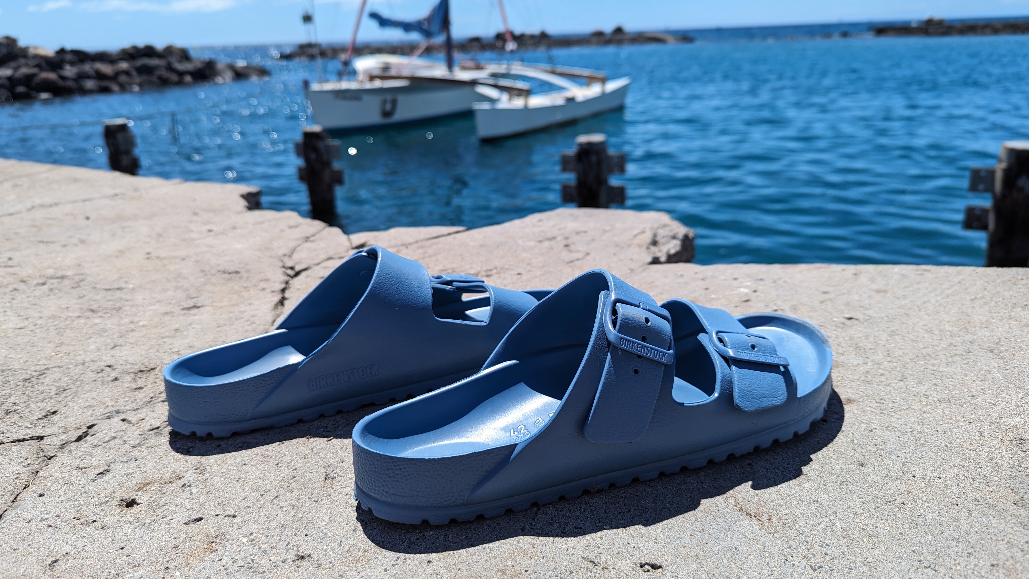 If rubber and EVA are involved, you’ll usually find these more water-friendly than other options, like the Birkenstock Gizeh Birko-Flor, which has a footbed made of cork-latex with a suede lining. These are stylish and comfortable, but they aren’t made for the water.