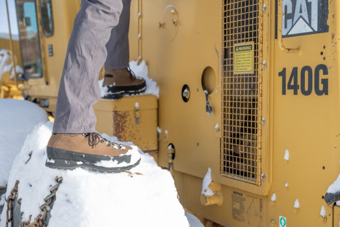 Folks working in wet and snowy environments should seek out reliably waterproof work boots; (photo/Conni Mahoney)