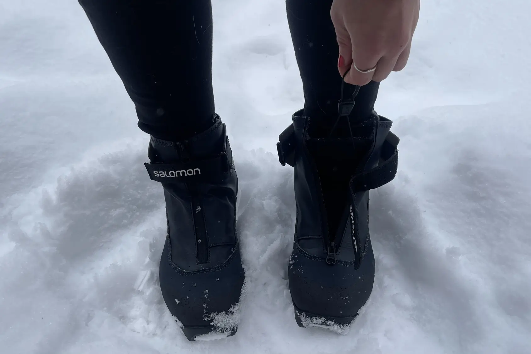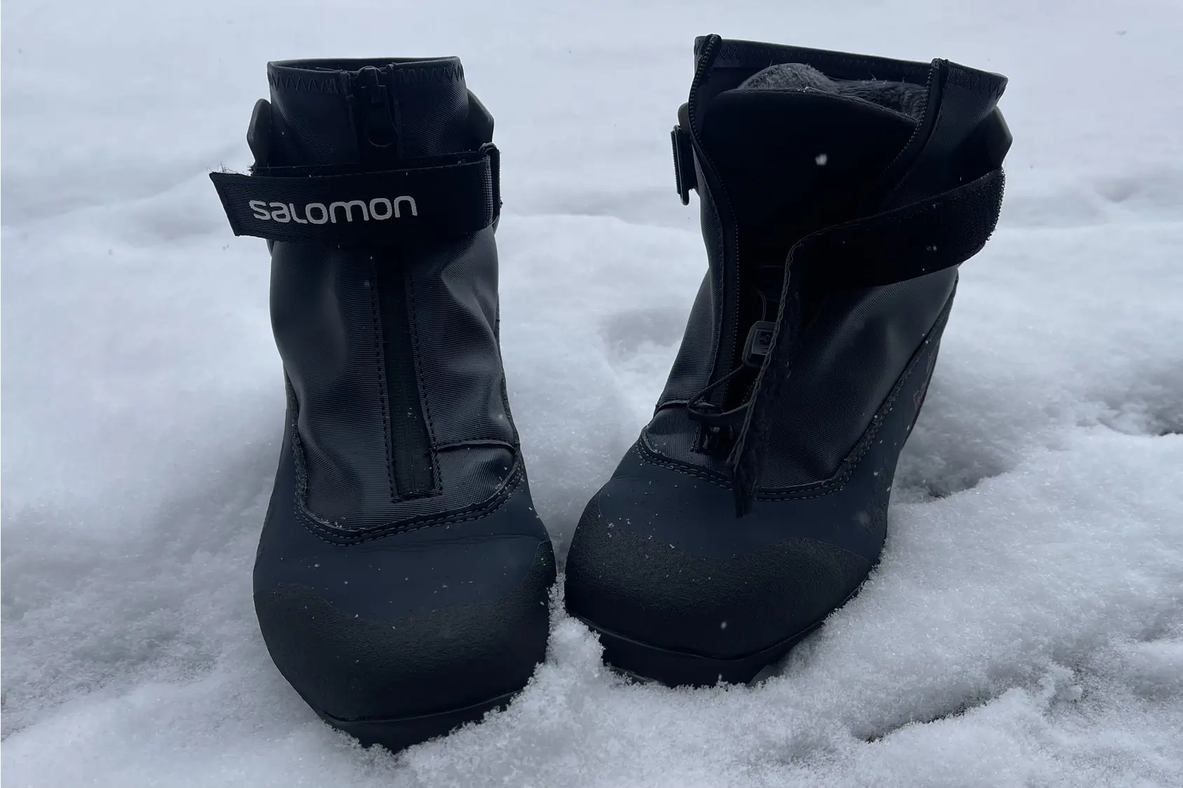 A waterproof zipper runs over the laces and seals the boot, trapping warmth and keeping out cold air, snow, and water. I never had issues with soggy or sweaty feet. Not even when I had to hike my skis over a bank of calf-deep powder.