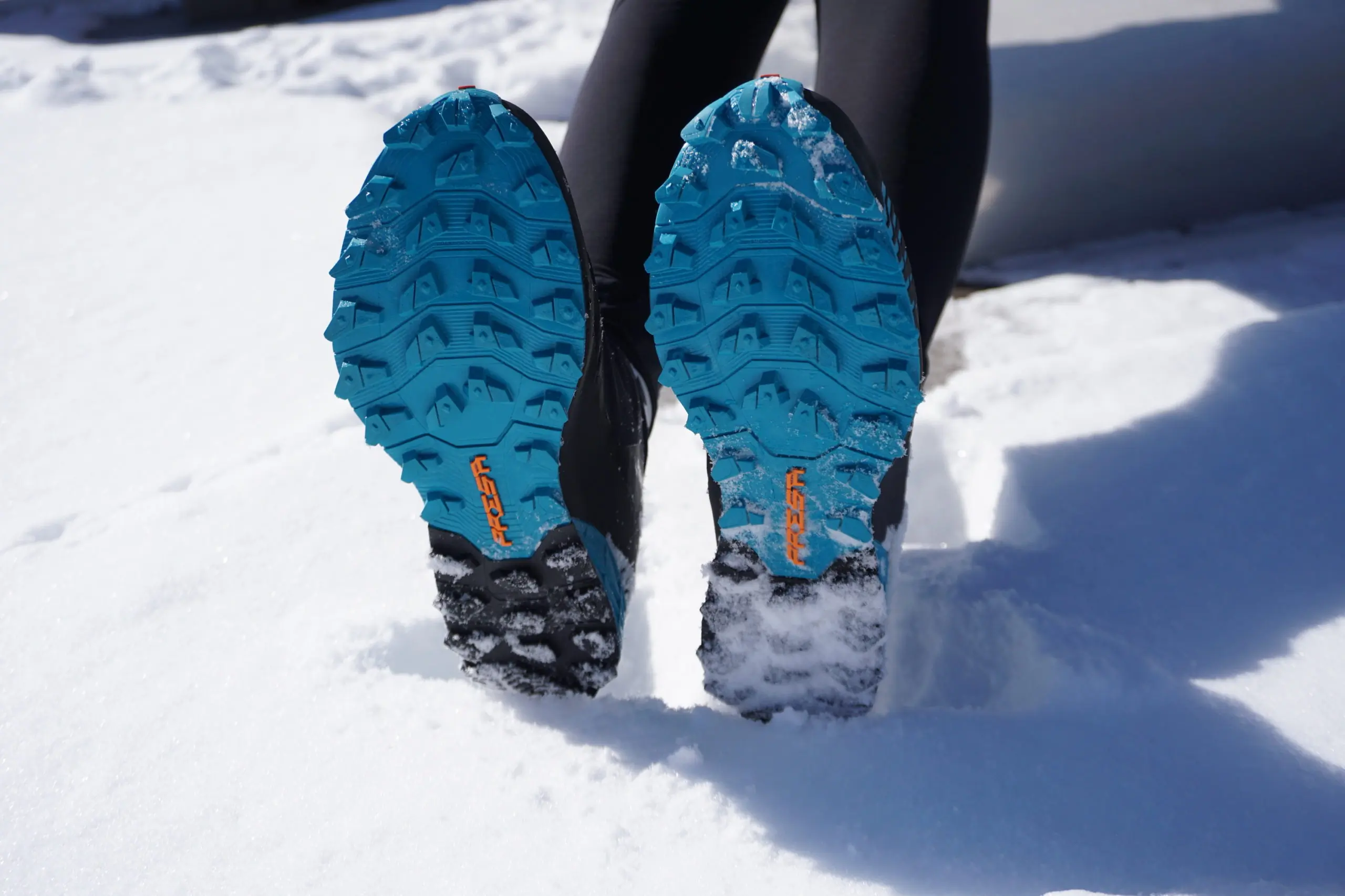 The SCARPA Kalibra G shoes can also eliminate or reduce a lot of pain points for winter runners who are hitting more serious trails — especially in snowier conditions.