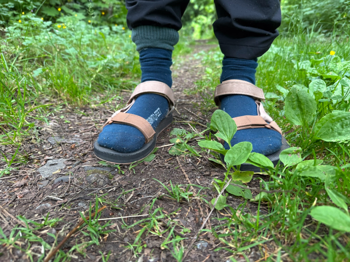 The molded EVA midsole is soft and comfy, though it doesn’t offer as much arch support as I typically like in an all-day sandal. The Velcro straps don’t feel as secure as the sliding buckle mechanism of a Chaco or Bedrock sandal. My feet slid around a bit more on the sole, especially while hiking downhill. I do like that the strap design allows me to wear these sandals with socks when it gets chilly!