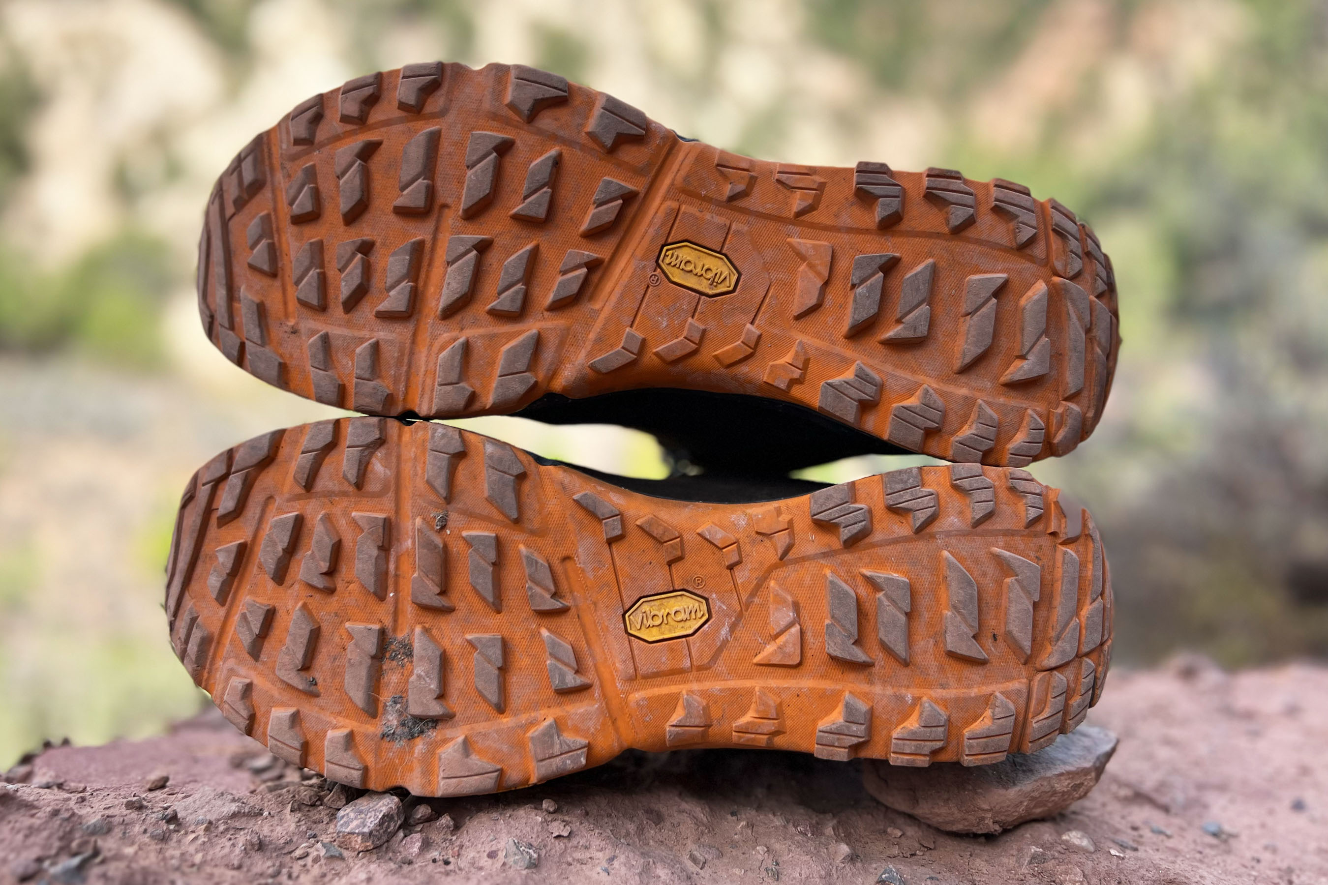 The Thunder Pro GTX uses a recycled EVA wedge midsole and a Vibram Junko MEGAGRIP outsole. The toe and heel are protected with PU Rands that have proven very durable (so far).