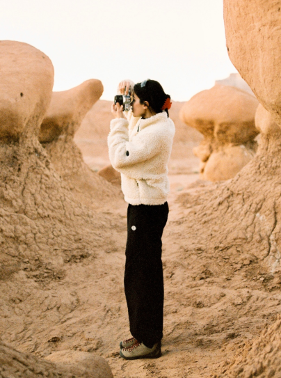 Sara Covey is a film photographer and content creator. She collaborates with brands to tell their stories, often using 35mm photography that stands apart in a world of digital filters. She also teaches photography online. For a family trip with Go RVing, the Coveys headed to Goblin Valley State Park, Utah. There she hiked and photographed the landscape of the oddly-shaped hoodoo sandstone formations, also known as goblins, for which the valley is named.