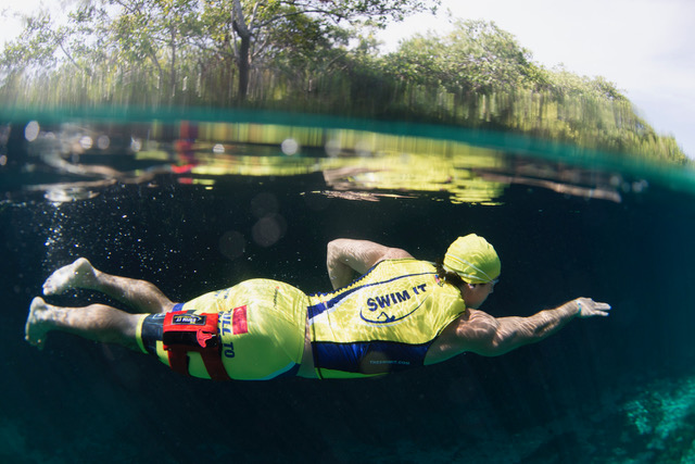If you find the swim is an absolute fear fest, consider something beyond the basic security of a wetsuit. One race-approved aid is The Swim It, a little leg buoy designed to help you get over the initial shock of an open-water environment and swim with more confidence.