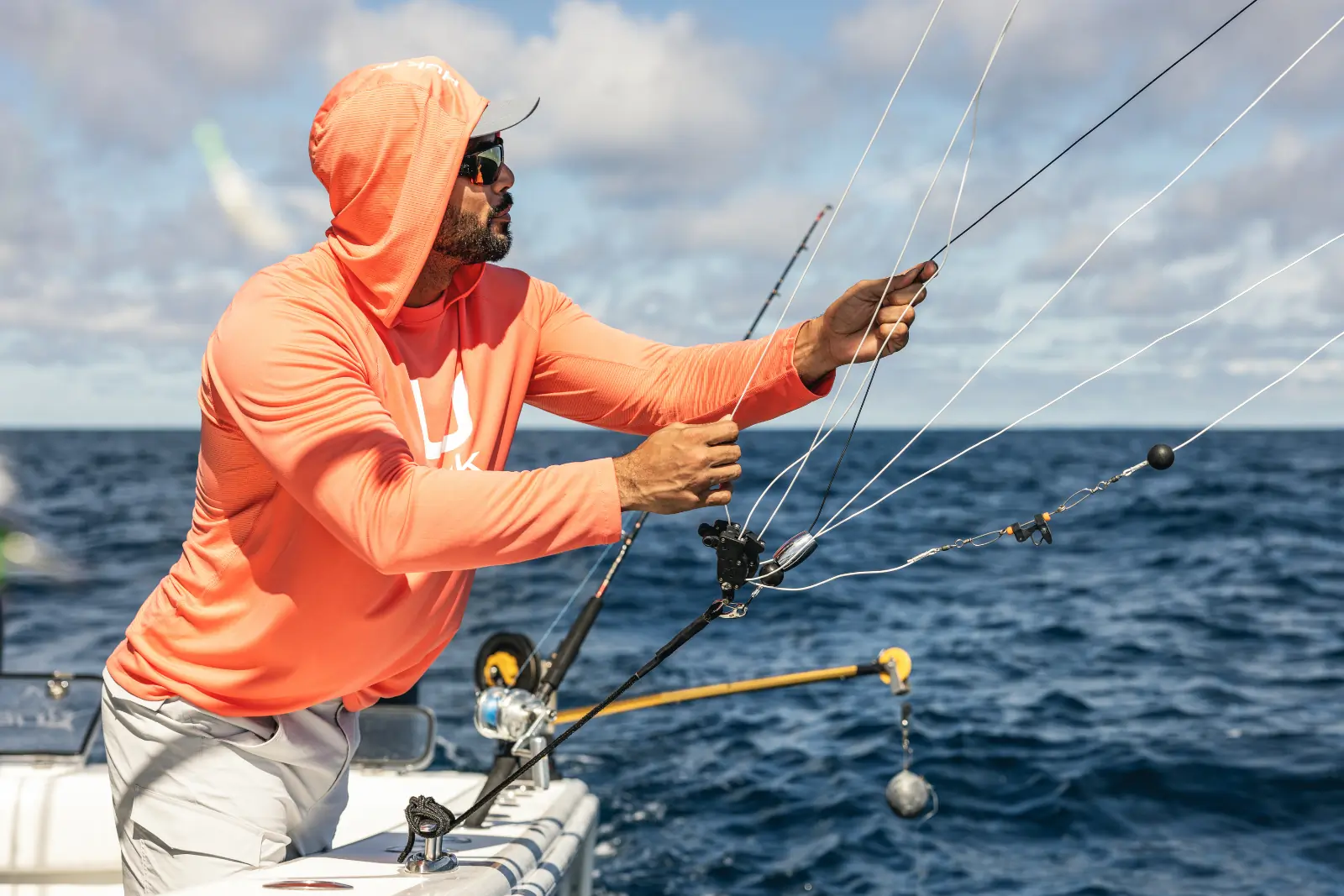 It still delivers 50+ UPF sun protection and comes in hoodie, long-sleeve, and short-sleeve options. The raglan sleeve cut gives him full range of motion while casting, and the antimicrobial treatment helps fight off odor after long days in the sun.