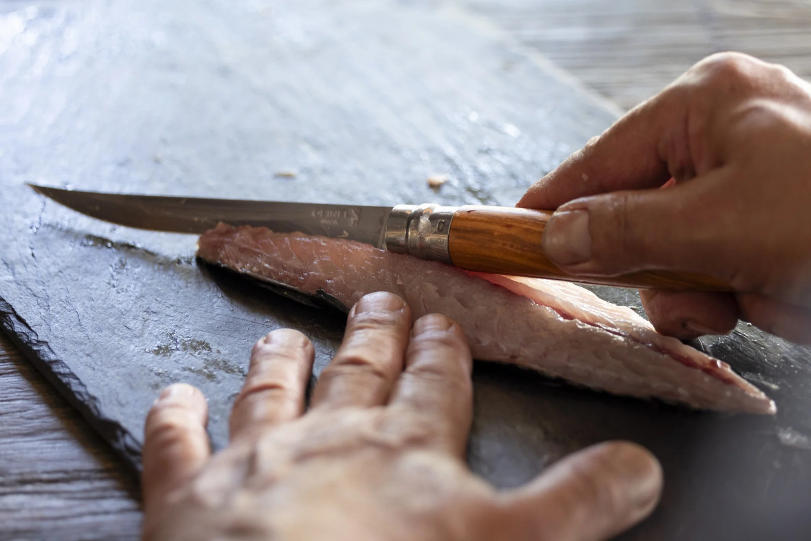 The stainless steel blade holds an edge and resists corrosion, while the slim wood handle feels just right in the hand. It folds up tight and disappears into a tackle bag or pocket until it’s time to clean the day’s catch.
