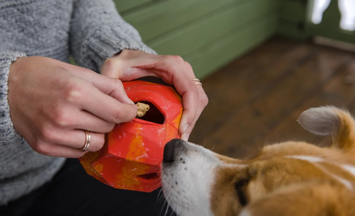 Working for rewards is half the fun. That’s why the Gnawt-a–Rock Treat Dispensing Toy adds a bit of anticipation and play to your dog’s treat sessions. A durable, chew-proof construction and small kibble/treat dispensing notches extend your dog’s reward cycle and makes them an active participant in the feasts and fun.